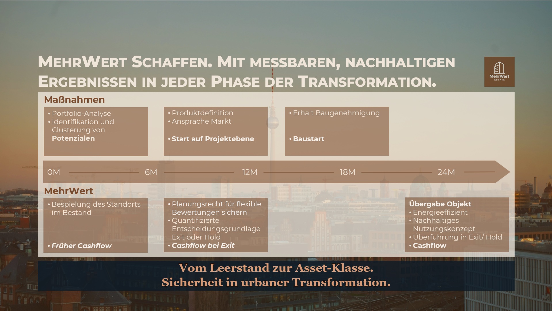 Wir schaffen MehrWert – durch klare Nutzungskonzepte, Planungs- und Investitionssicherheit sowie konsequente ESG-Optimierung über alle Projektphasen hinweg.